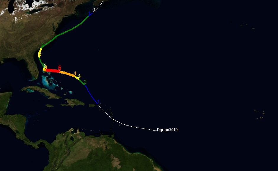 Lat, Lon will dictate position, category can be printed (note no value if Tropical Storm or Depression etc so anything not a "Hurricane" will be assigned zero) and wind can be used as a rough representative for turtle speed.