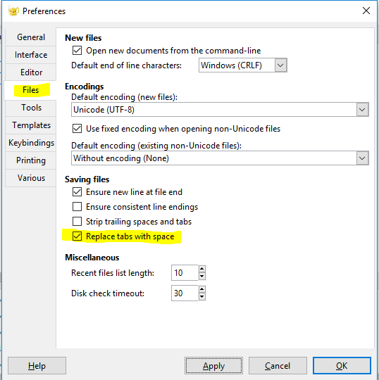 - to repair this go to Preferences/Files and check Replace tabs with space