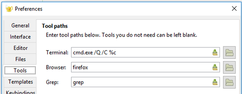 - Tools to be able to run ON WINDOWS leave as the default - if you accidentally changed it, the default is shown below cmd.exe /Q/C %c