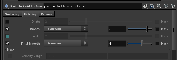 parameters: https://www.sidefx.com/docs/houdini/nodes/sop/particlefluidsurface.html