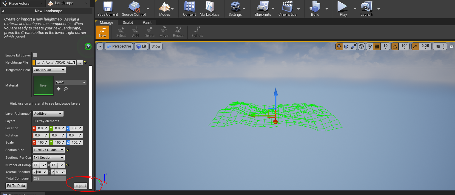 - In unreal click on terrain tool to get the file, size and click import - TA-DA!