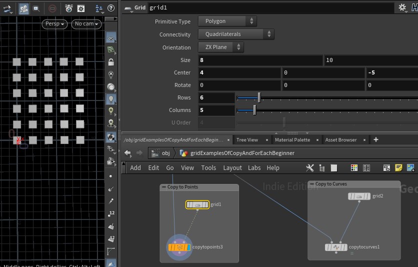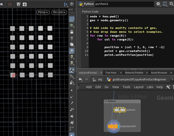 CONTEXT NOTE: The copy stamp node has been a very versatile node (which I refer to as the copy node) and was a superset of the copy transform and copy to points nodes. Functionality was added to the copy to points node that allows variants (explained below) and the copy to curves node was introduced. In addition, for-each, wrangles (vex) and python appear. Further distinctions are made between implicit and explicit loops with regard to vex and vops but that is a top for more advanced users. For beginning users, focus on the container with postfix Beginner.