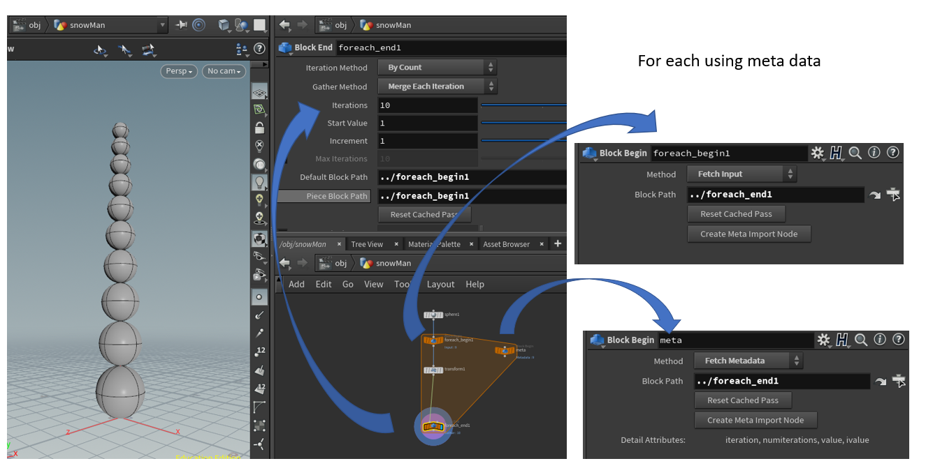 There are many ways to create loops in Houdini including the for-each loop. This is a very powerful node, however it is also useful to understand the copy nodes beforehand. Wrangle nodes require some coding knowledge.