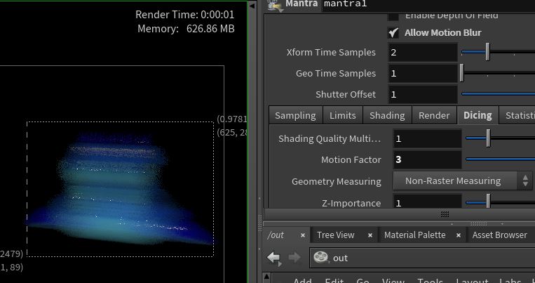 - Motion Blur optimization using Motion Factor (in the mantra Dicing tab) - Example file manipulateMotion Factor.hipnc