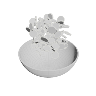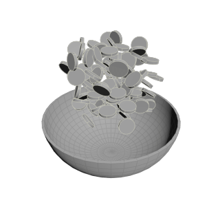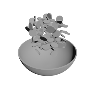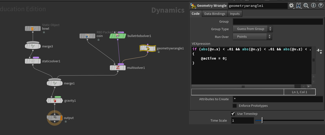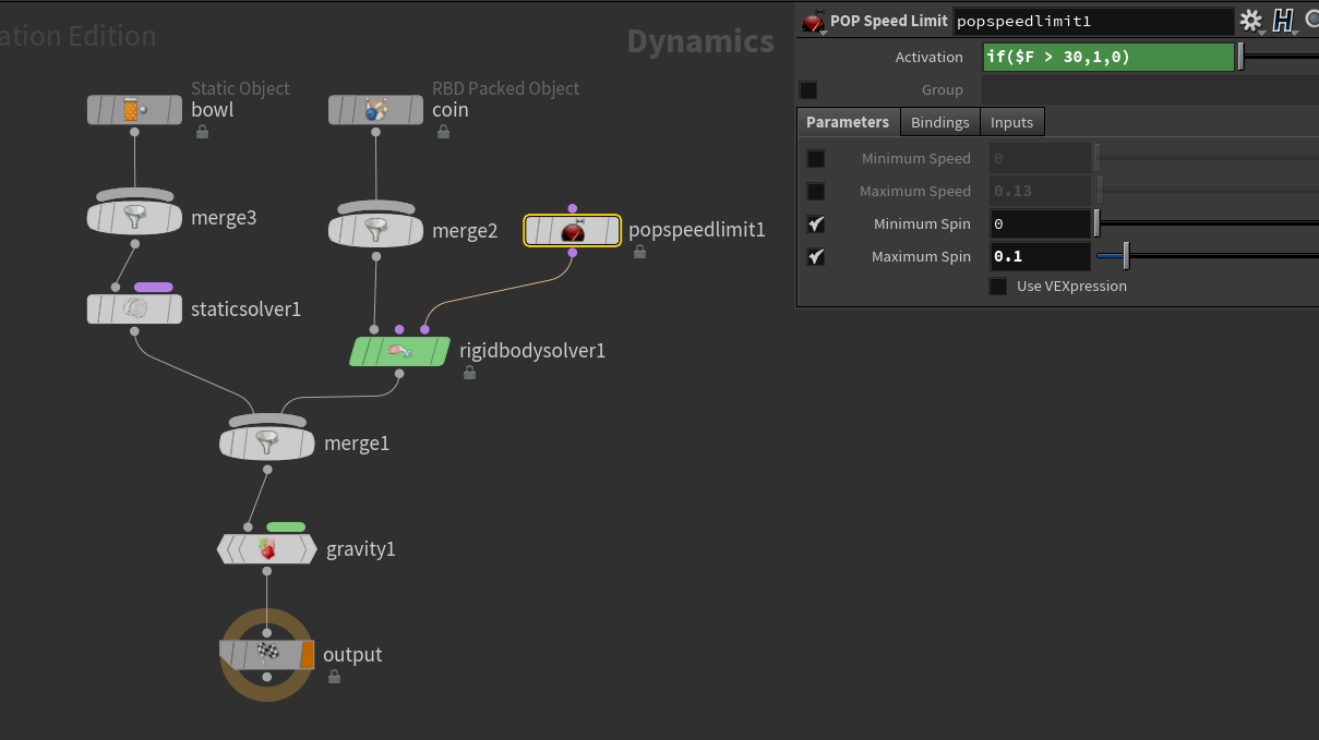 - Change the Collision Padding to be more appropriate for your scene. By default, collision padding is set to .02 and in most cases this is fine. But in this case, the coin is only .015 radius - so the padding is overwhelming the size. Changing this to .001 will get rid of most of the issues. If you are simply using the RBD for layout, this resolves the issue as you can cache once they are settled to a frame you select.
