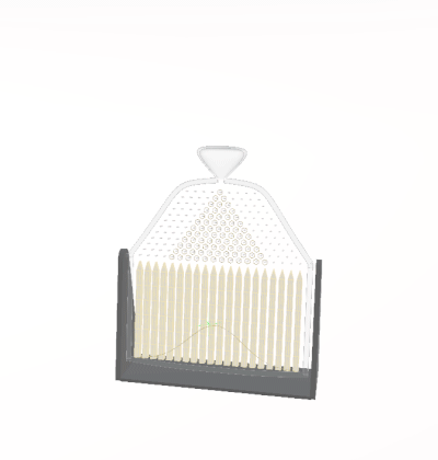 galton board, the process of flipping the simulation and look
