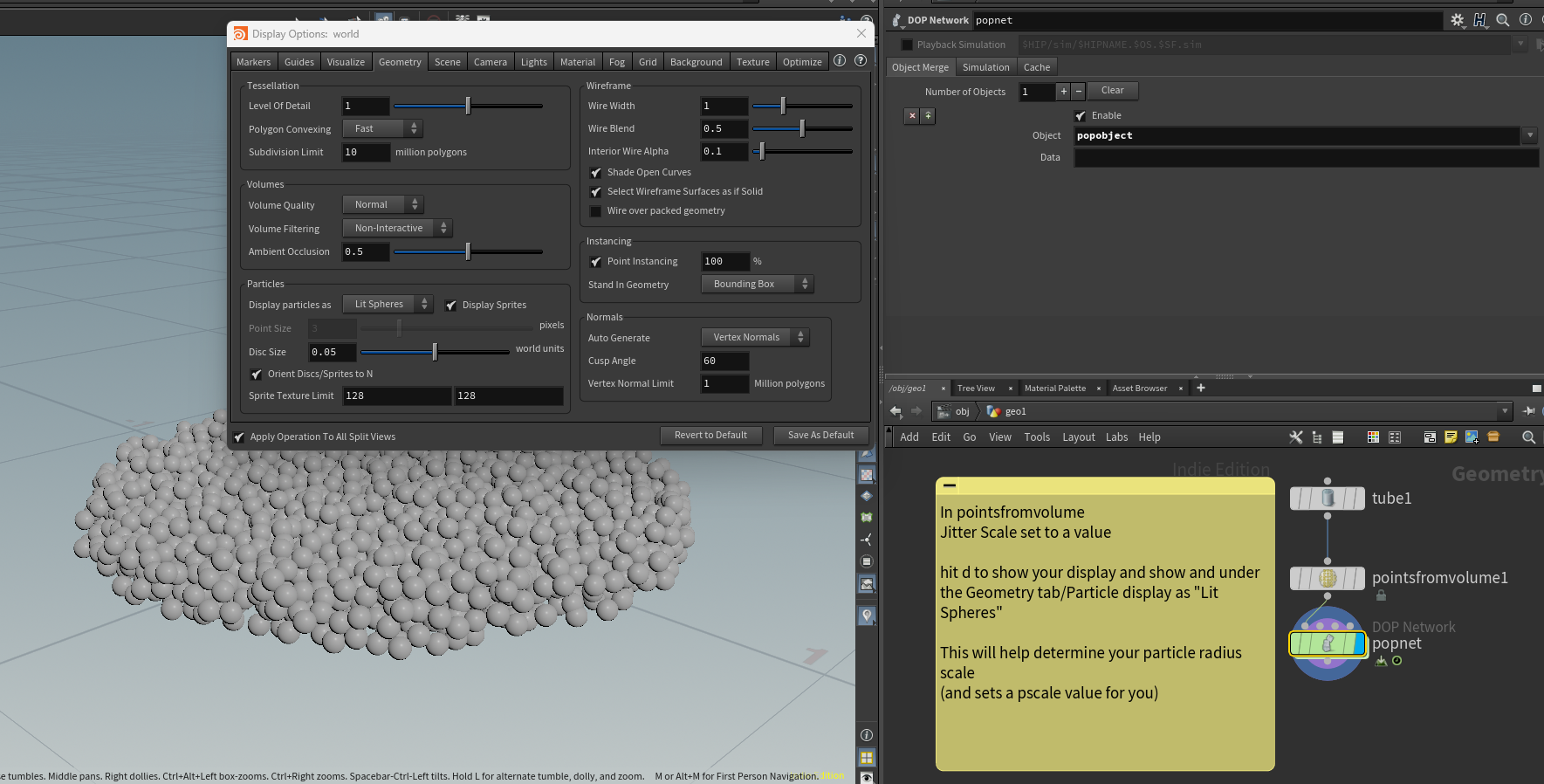 - display as lit spheres to get the proper size - in simulations having intersections to start will cause behavior issues in general