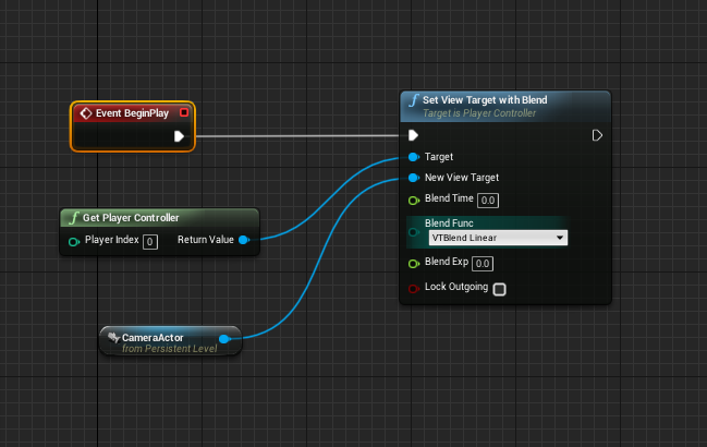 - define an CameraActor - create a level blueprint (blueprints/open level blueprint) that uses this as the camer