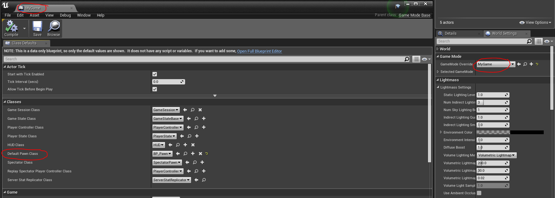 It is also a good idea to include the Game Mode blueprint and point the game mode (settings/Game) to it in details
