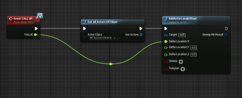 In addition you need a Blueprint Interface node (this allows you to set up the function CALL 2P so that the data can be used in pawn 2.