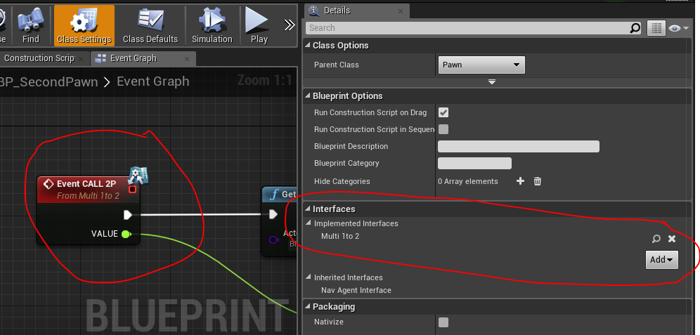 Pawn Two (make sure that you have the class settings for the interface added or the event will not exist - see below)