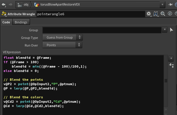 is explained below.This example is based on an expressions tutorial to blow a torus up from a since removed tutorial on expressions from SideFX back in H9. I have created and updated this example using point wrangles as seen in my file
