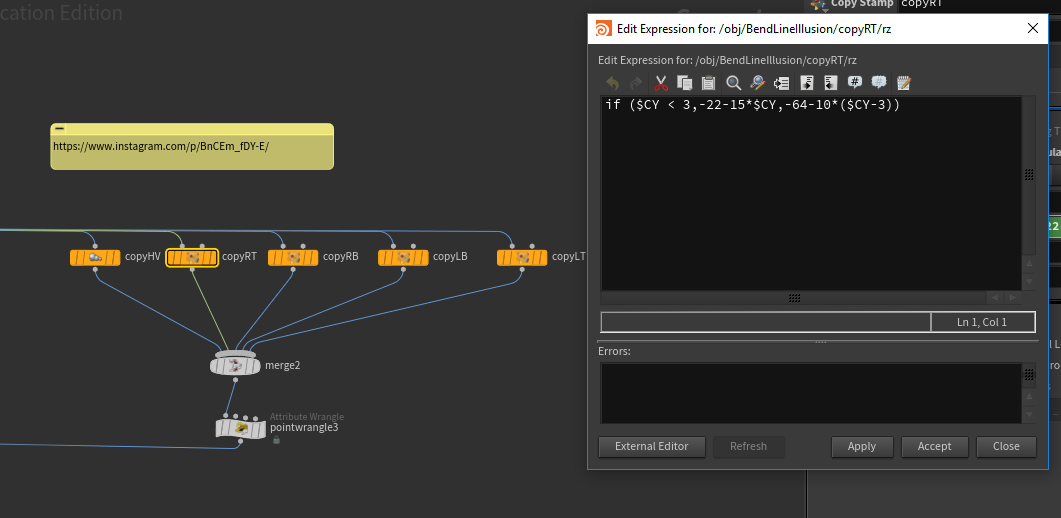 of the line (with pointwrangles of course).In this case the image was projected onto a grid (we could have used it as a background camera image but this allows easy adjustment to center the image).