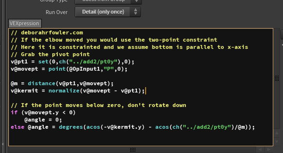 Suppose we have a point (representing the top of an object we are moving up and down) and we want to drive the rotation with this - we will need to use acos and dot product as follows: