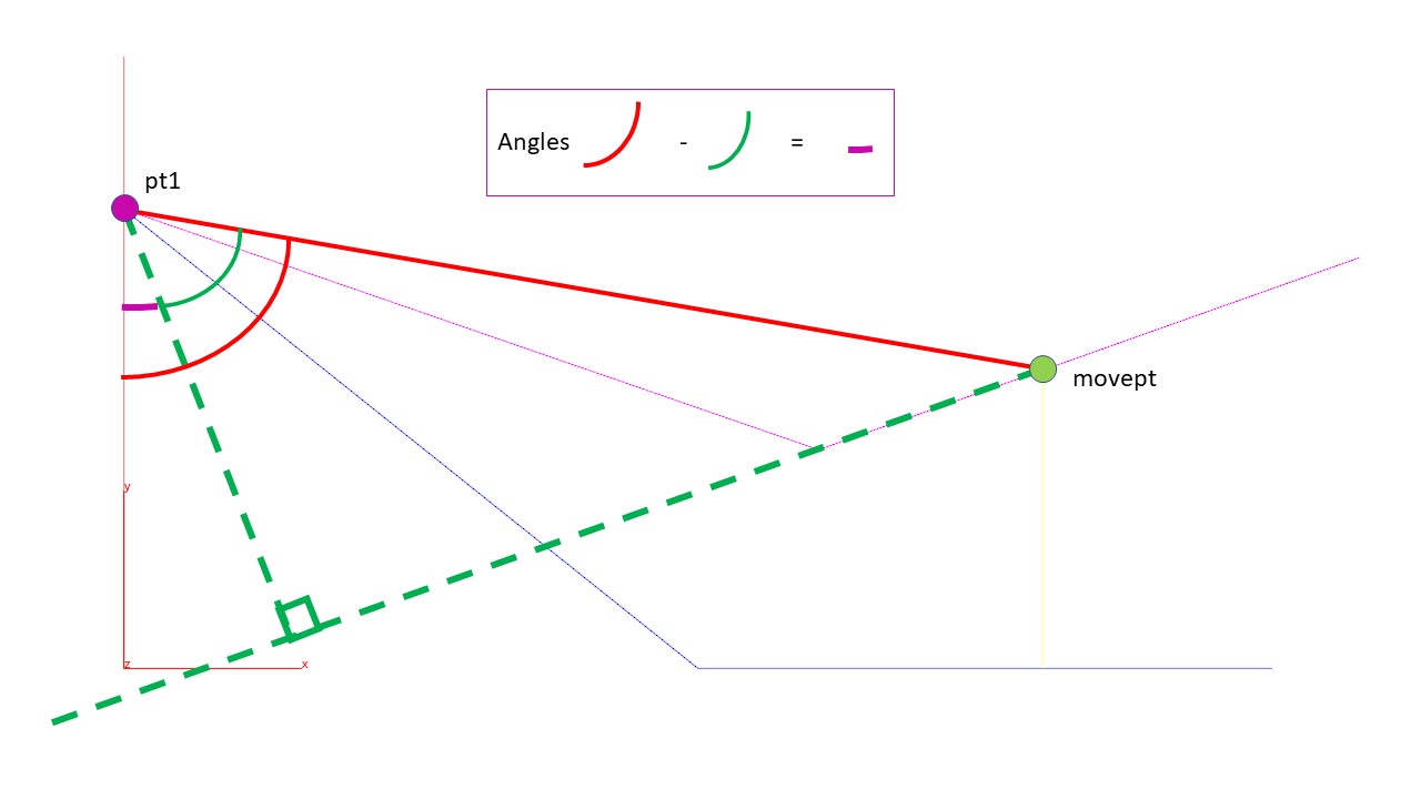 Once you have the above calculated it is a matter of taking the red angle and subtracting the green angle to give us the desired magenta angle