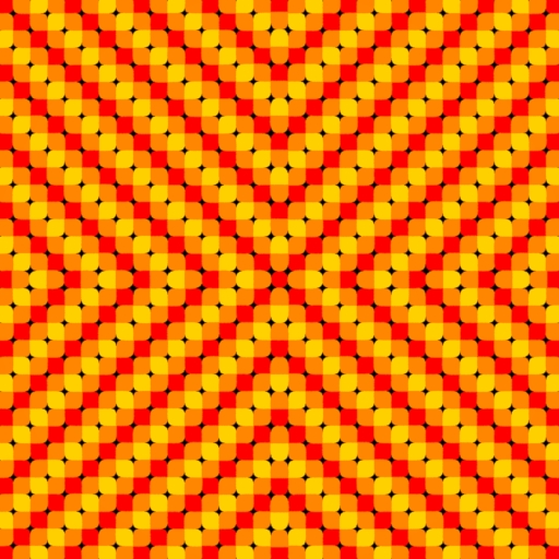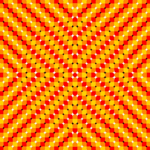 Inspiration REFERENCE by Akiyoshi Kitaoka image found at (http://www.psy.ritsumei.ac.jp/~akitaoka/ACswamp2e.html) under Autumn Color Swamp 2 "The Sun" and his website. I recreated this pattern in Houdini. On the right is my RESULT.
