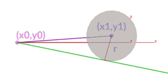 After deciding on a model to use (see modeling section below for details) the next step was to figure out how the problem applied if instead of rotating the line corresponding to a line at the bottom part of a box we were rotating around the origin with the box shown below. This is where it becomes similar to the tangent to a circle problem, but again we are going to do this for every point on the polygon.