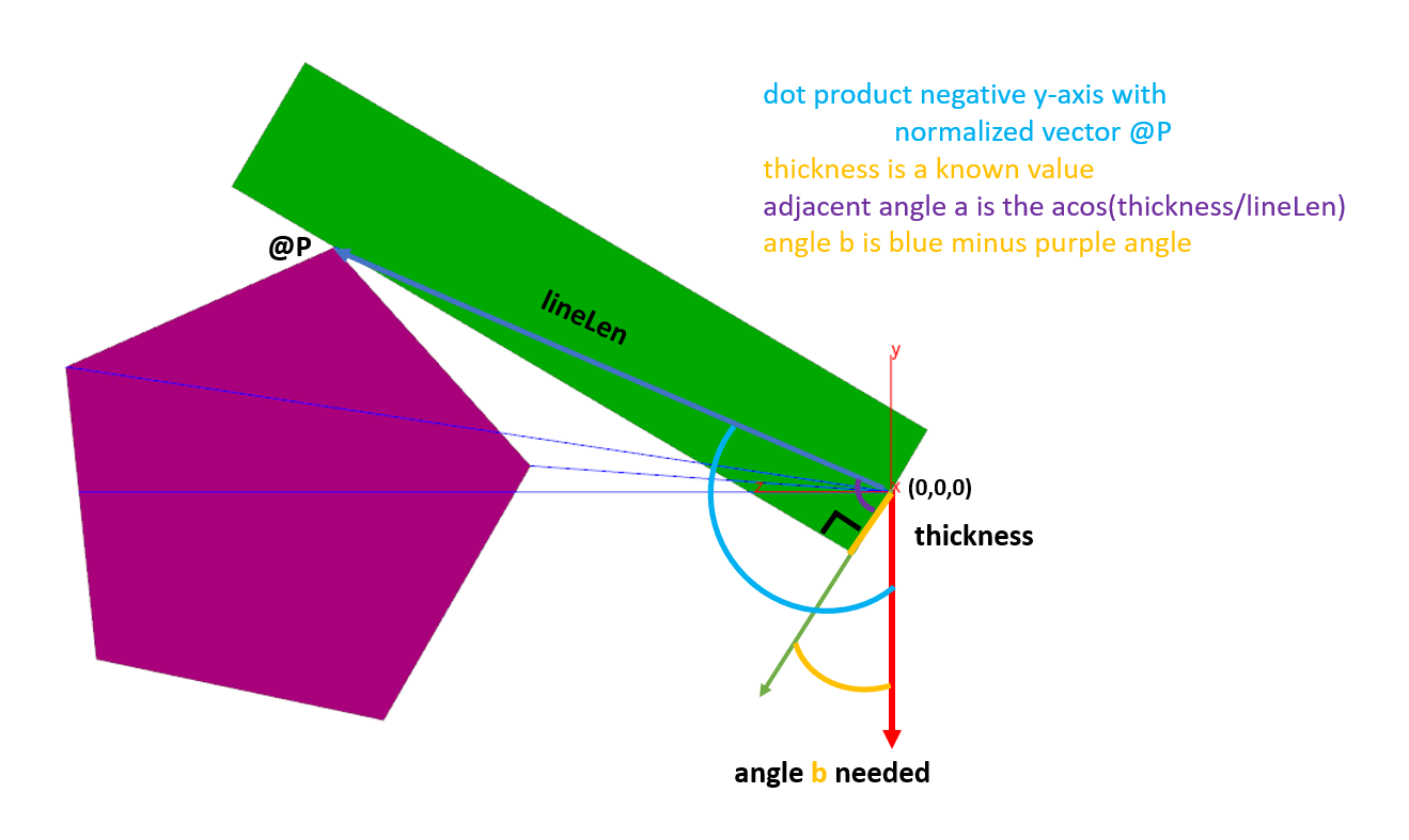(wrangle node examples) these all work fine, except in the case of an arbitrary polygon moving a lever. Most of the examples to date have not required a solution to this problem but I was just thinking about the tangent to a circle and what if it was not a circle ...