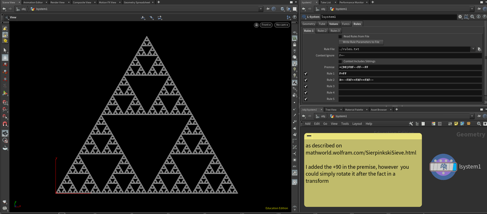As a challenge to myself, I wanted to build Sierpinski Triangle in a single point wrangle node in Houdini (link here). I have built it in python and L-systems in Houdini which both easily utilize the recursive nature of the object.
