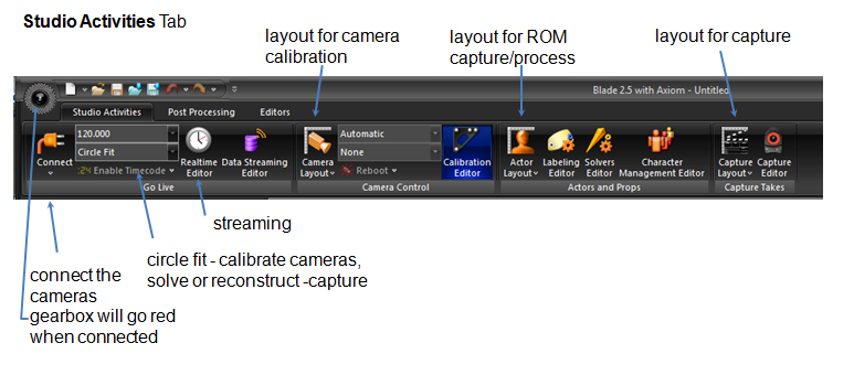 Start Vicon Blade 2.6 (Blade 1.7 is on the desktop but is an older version that you do not want to use.)