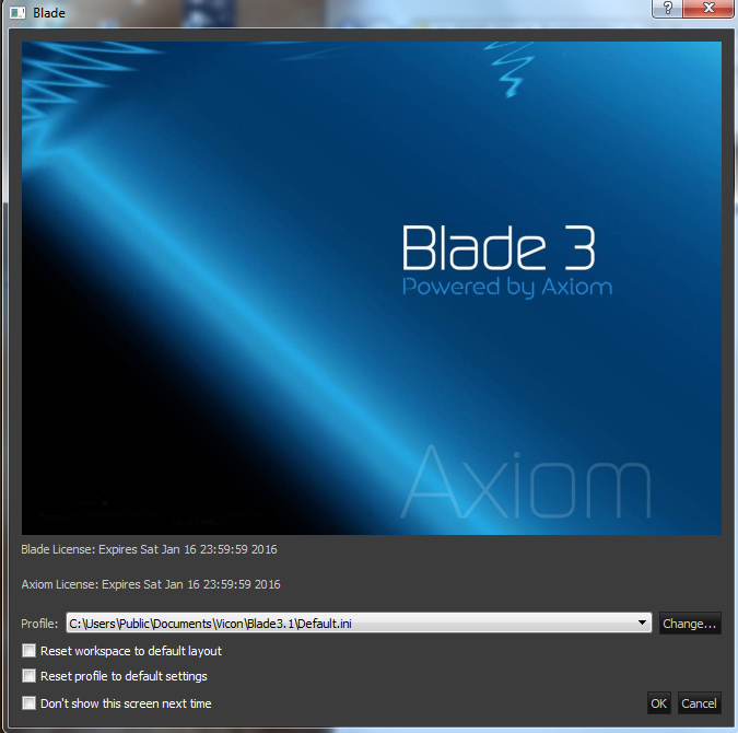 Hit OK. Default profile is fine (C:\Users\Public\Public Documents\Vicon\Blade3.3.1\Default.ini)
