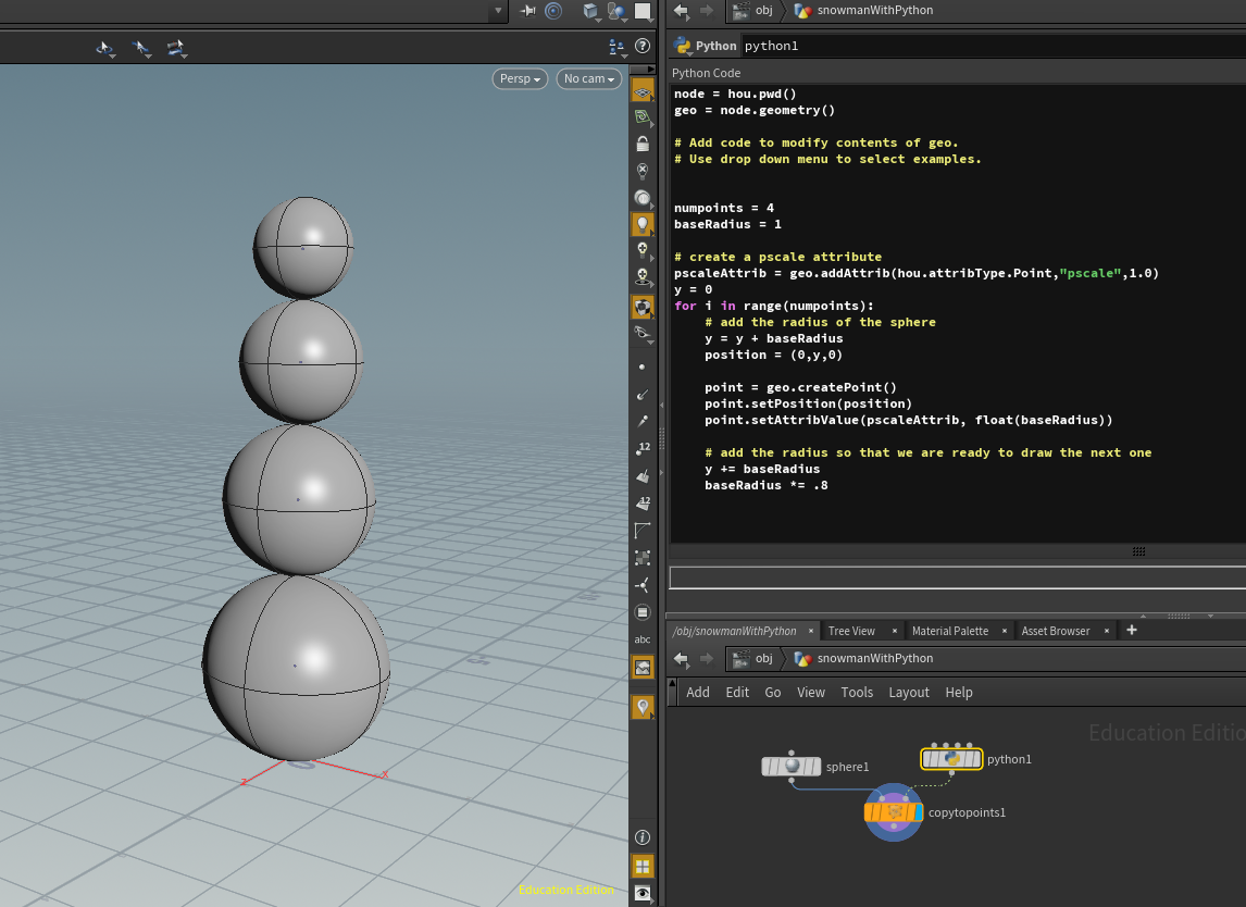 We are going to build the snowman by copying correctly sized spheres onto points. The steps are as follows:
