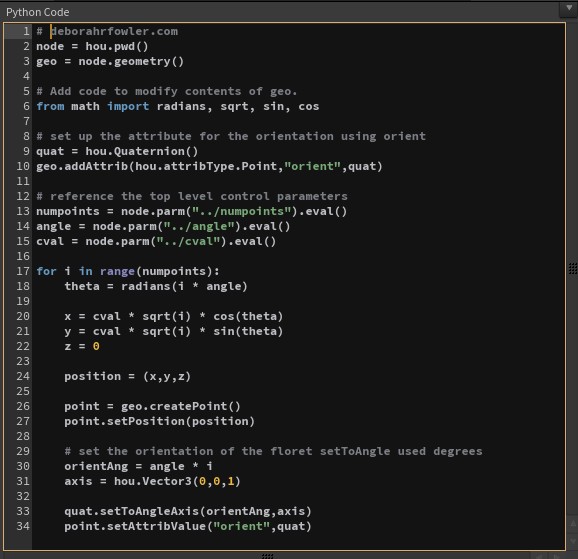 in Houdini Example - Phyllotaxis SOP including attribute orient