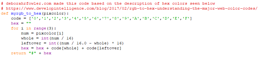 - function below uses the hex value returned from myrgb_to_hex from the rgb color retrieved from the image using getpixel
