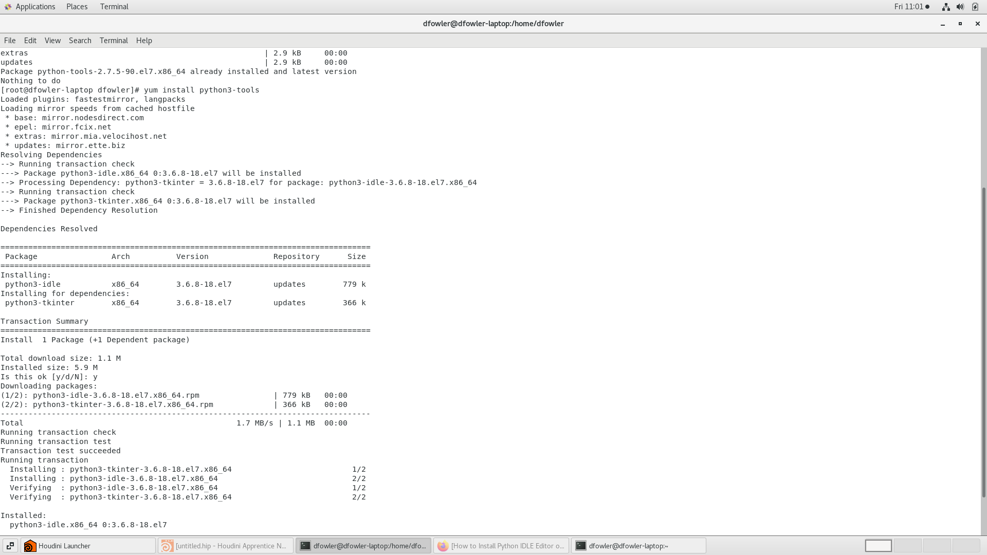 linux laptop I "yum installed" by using the following